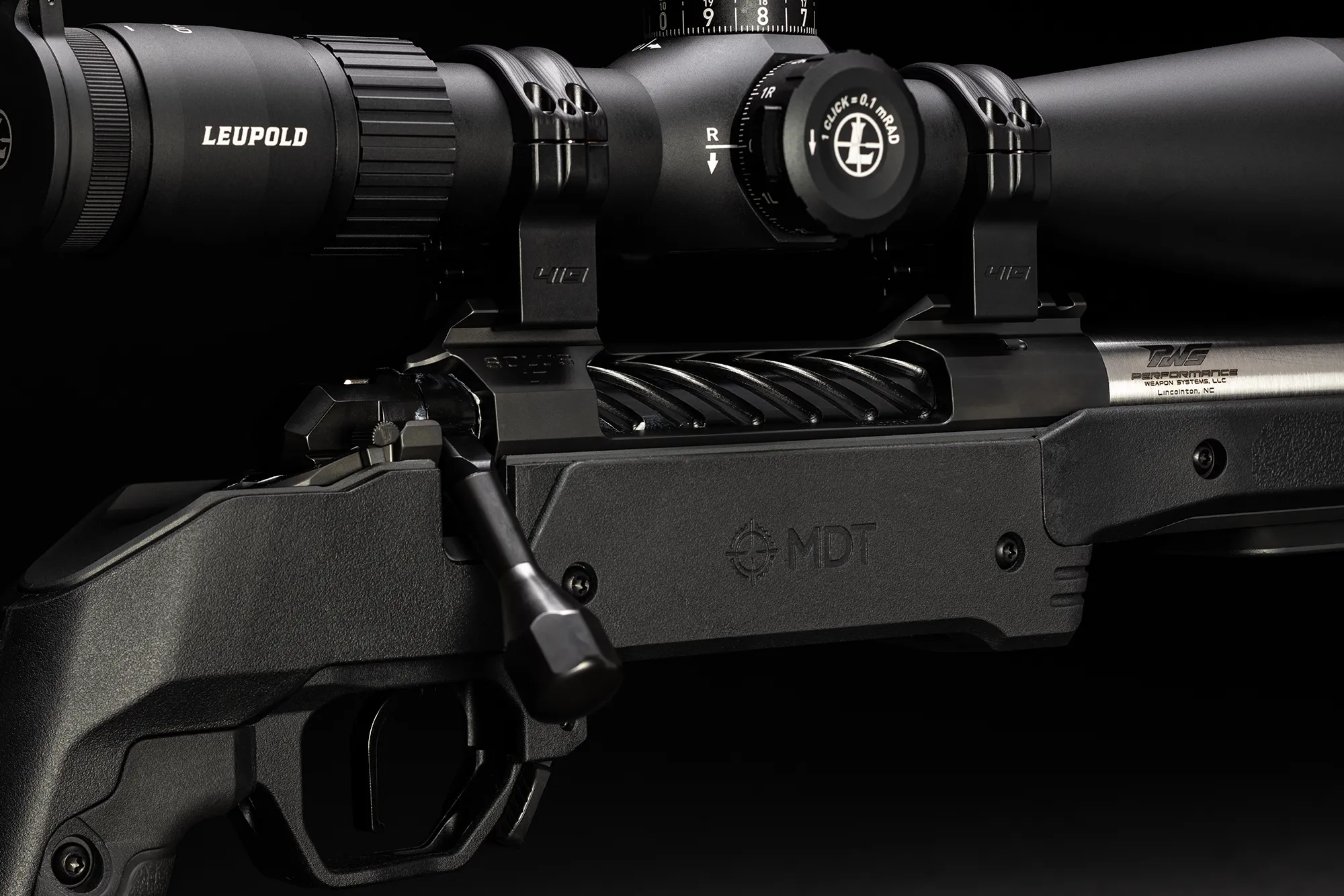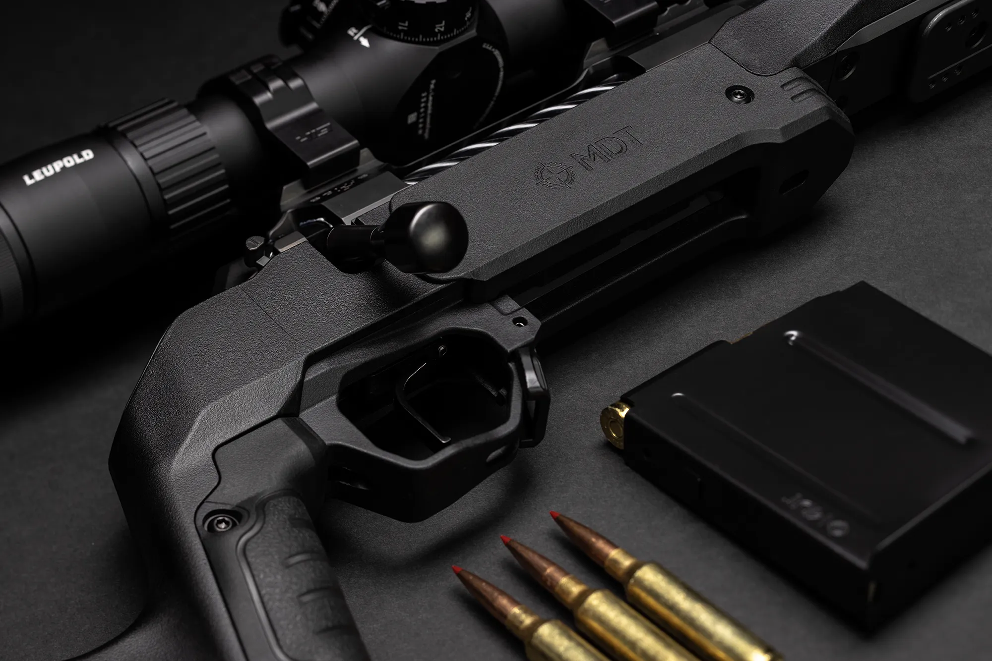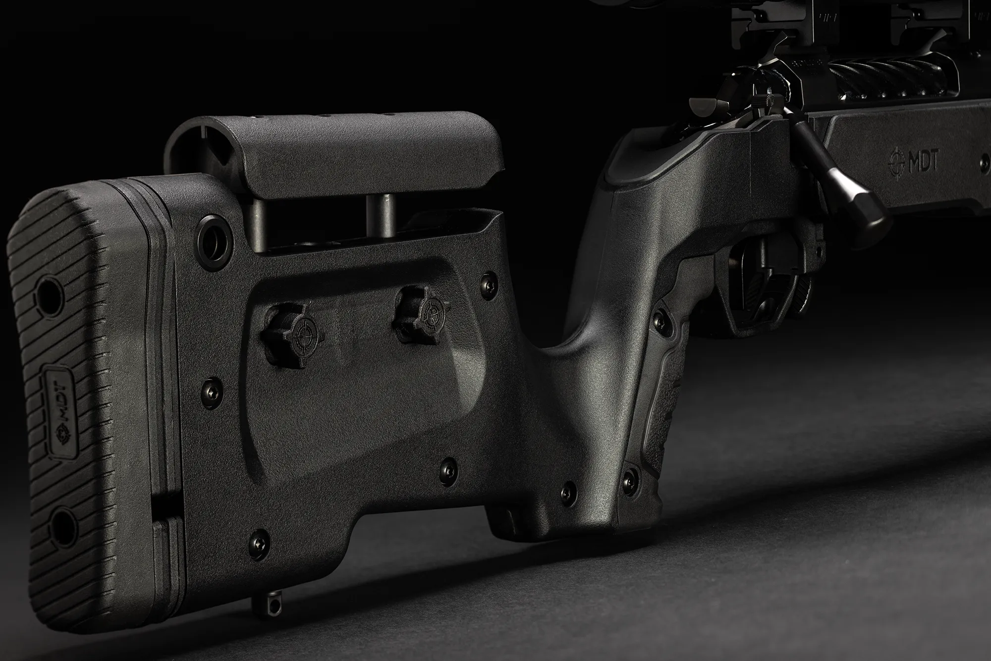 MDT XRS chassis, adjustable LOP and cheek height, 10.25” ARCA rail, Send-It Gen 1 electronic level